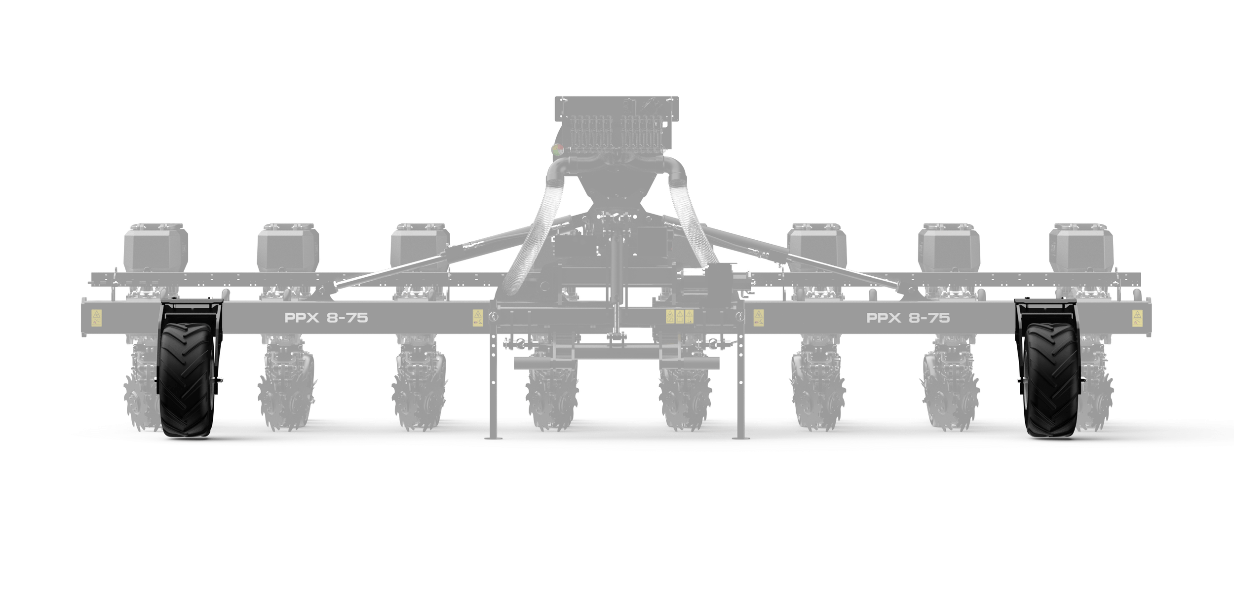 A PPX kérhető stabilizáló kerekekkel, hogy egyenetlen talajon is biztosítva legyen a megfelelő kontúrkövetés. A kerekek könnyen eltávolíthatóak vagy átállíthatóak, különböző keréktengely pozíciók is elérhetőek, hogy különböző méretű gumiabroncsokat lehessen használni. Ezek a kerekek úgy vannak kialakítva, hogy minimalizálják a talajtömörödést.